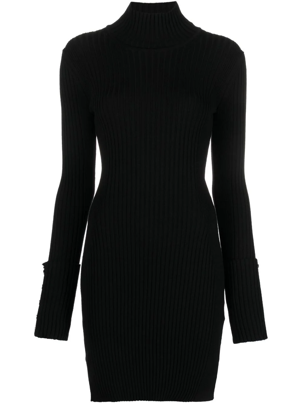 high-neck ribbed-knit minidress This dress from Paco Rabanne is an ode to minimalist, stripped-back design. It comes in black and is ribbed-knit with a mock neck and long sleeves with extended turn-up cuffs. Highlights - Black - Wool blend - Ribbed knit - High neck - Long sleeves - Buttoned cuffs - Thigh-length - Straight hem Imported Composition Wool 83%, Polyamide 15%, Elastane 2% SIZE & FIT Model measurements Height 5 ft 10 in(1.79 m) Bust/Chest 31.49 in(80 cm) Hips 35.03 in(89 cm) Waist 23.62 in(60 cm) FittingInformation Designed for a close fit throughout Made with a midweight knit, this piece offers some stretch This piece fits true to size – take your usual size Washing instructions Hand Wash