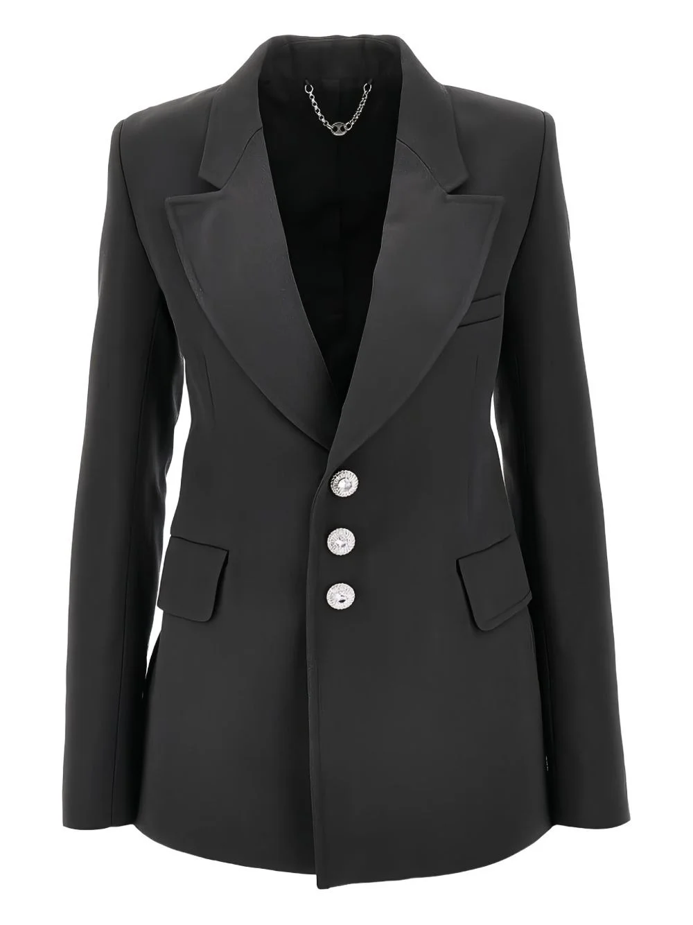 embellished-button single-breasted blazer Highlights - Dark grey - Button fastening - Front flap pockets - Virgin wool Imported Composition Virgin Wool 100% Washing instructions Read Manufacturer Guidelines