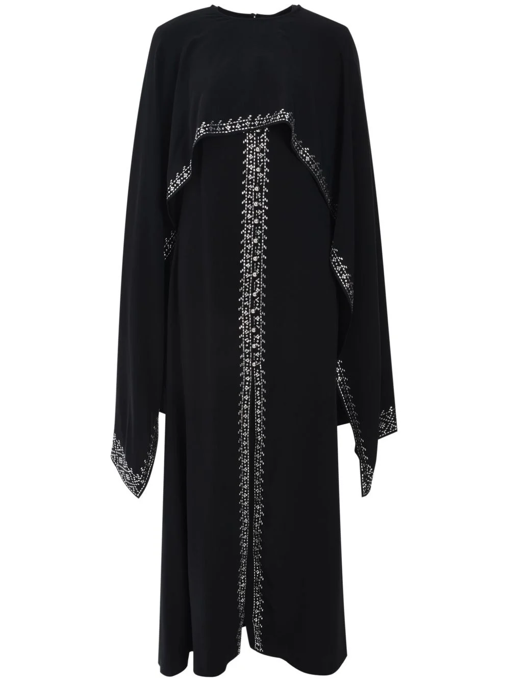 embroidered long dress Highlights - Black/silver-tone - Embroidered design - Front button fastening - Detachable cape design - Round neck - Long sleeves - Front slit - Straight hem - Long length Made in Italy Composition Acetate 62%, Viscose 38% Washing instructions Read Manufacturer Guidelines