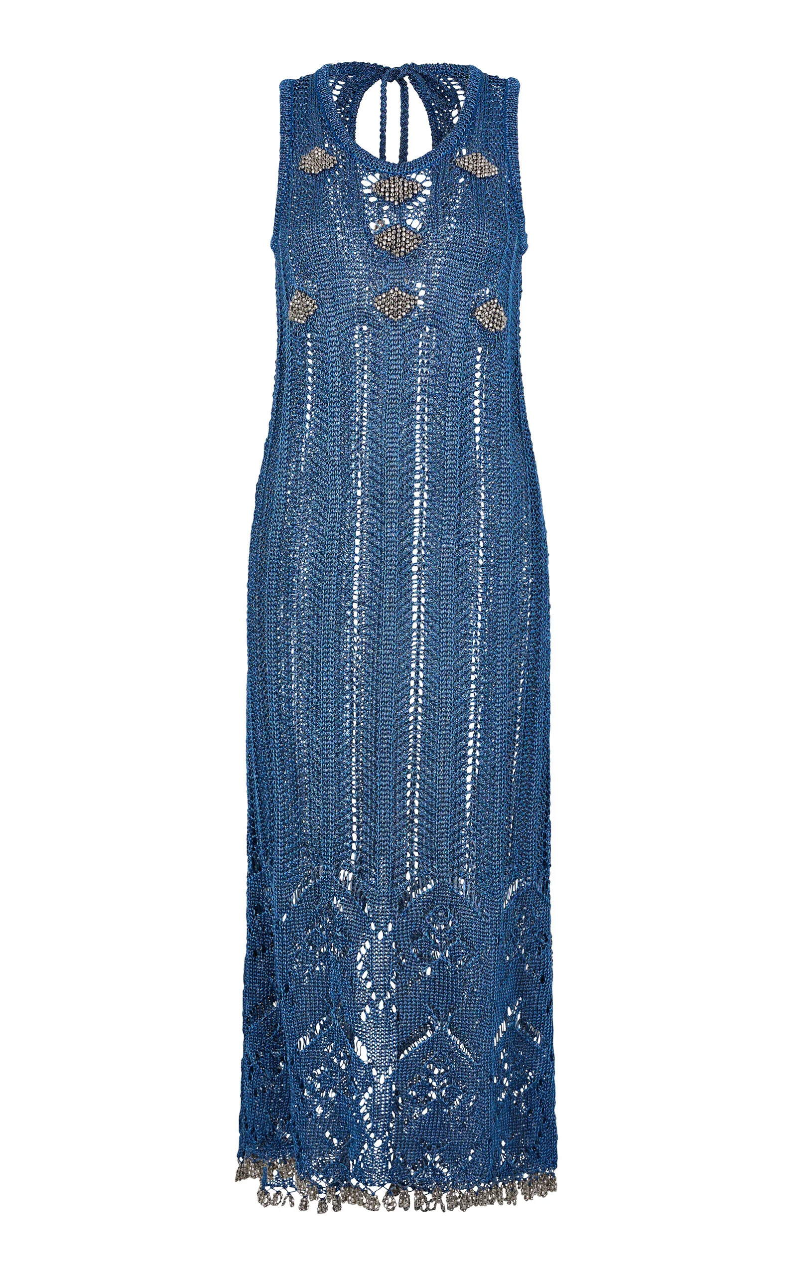 Embellished Metallic Knit Midi Dress turquoise