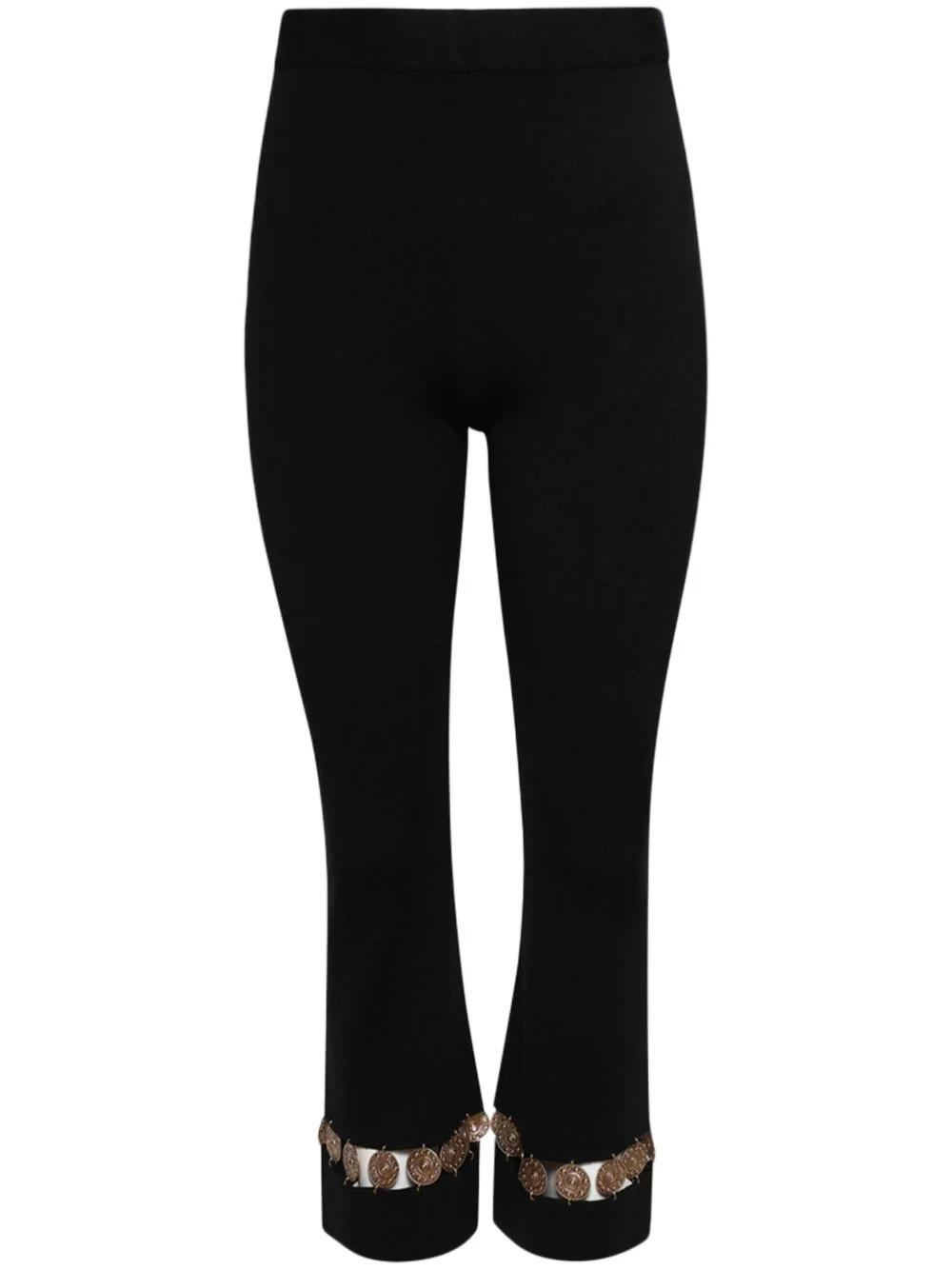 embellished straight-leg trousers Highlights - Black - Wool blend - Cut-out detailing - Flared hem - Bronze-tone circular embellishment Made in Italy Composition Wool 69%, Silk 23%, Polyamide 7%, Spandex/Elastane 1%