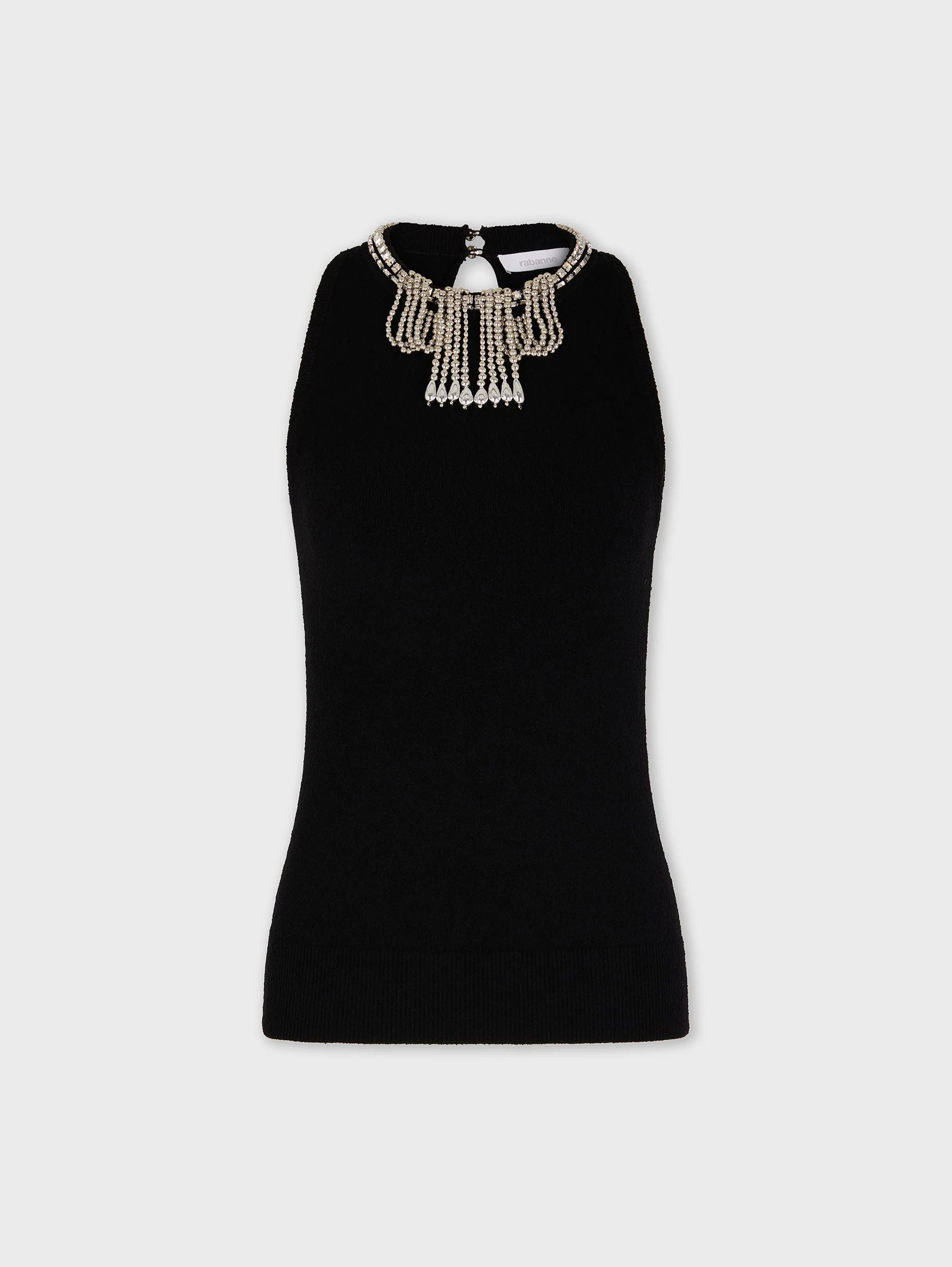Sleeveless top with jeweled embroidery. - Color: Black - Sleeveless - Round neck - Jeweled embroidery - 70% Viscose, 30% Polyamide - Made in Romania Size & Fit - Model's height: 180 cm / 5ft 11in - Model wears a size FR 36 / UK 8 / US 4 - This style is true-to-size - We recommend your usual size.