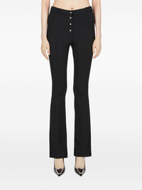 flared trousers Highlights - Black - Concealed fly and button fastening - Two rear patch pockets - Belt loops - Straight hem Imported Composition Viscose 95%, Elastane 5% Washing instructions Read Manufacturer Guidelines