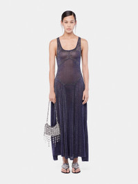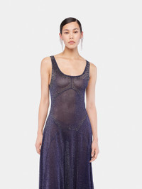 Long flared lurex knit dress with hotfix details. - Color: Navy - Sleeveless - Cowl neck - Long dress - 87% Viscose, 13% Meta - Made in China Size & Fit - Model's height: 180 cm / 5ft 11in - Model wears a size FR 36 / UK 8 / US 4 - This style is true-to-size - We recommend your usual size.