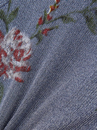 Metallic floral-print knitted cardigan Blue