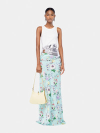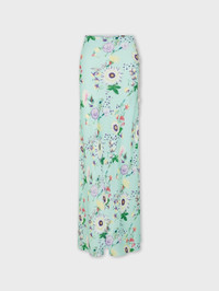Long satin skirt with floral print and silver chain details. - Color: Green / Purple / Orange - Long skirt - 100% Polyester - Made in Tunisia Size & Fit - Model's height: 180 cm / 5ft 11in - Model wears a size FR 36 / UK 8 / US 4 - This style is true-to-size - We recommend your usual size.