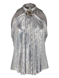 flower-detailing top Highlights - Silver-tone - Halterneck - Metallic finish - Straight hem Imported Composition Aluminium 100% Washing instructions Hand Wash