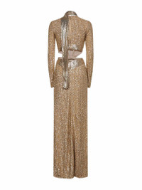 Gold sequins and metallic mesh long dress