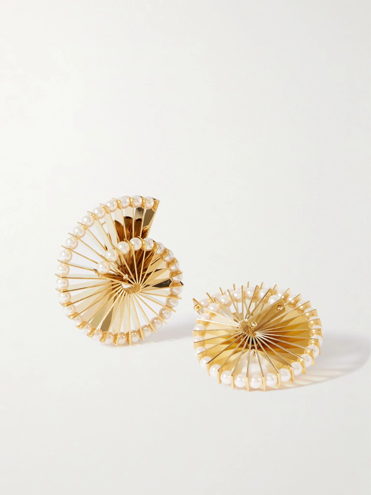 Rabanne's earrings have cool spiral shapes dotted with lustrous faux pearls. They're made from gold-tone brass and are perfect for evening looks. Details & Care - Post and clasp fastening for pierced ears