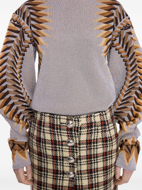 jacquard sweater Highlights - Grey/brown - Jacquard - Crew neck - Geometric print - Long sleeves - Balloon sleeves Imported Composition Viscose 83%, Metallized Polyester 17% SIZE & FIT FittingInformation Designed for a relaxed fit, this piece allows for comfort and movement when worn The ribbed hem offers a close, comfortable fit Made with a midweight knit, this piece offers some stretch