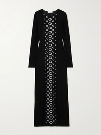 Since the debut of its chainmail designs in 1966, Rabanne has used so many metal embellishments, resulting in glamorous styles like this dress. It's made from stretch-jersey to comfortably hug your figure and decorated with rows of eyelets down the middle. Accessorize with one of the label's iconic bags. Size & Fit - Fits true to size, take your normal size - Designed for a close fit - Mid-weight, stretchy fabric - Model is 180cm/ 5'11" and is wearing a FR 36 Model measurements: - Bust: 80cm/ 31.5" - Waist: 65cm/ 25.5" - Hip: 89cm/ 35" Details & Care - Black stretch-jersey - Slips on - 90% cupro, 10% elastane