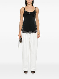 stud-detail top Highlights - Black - Satin weave - Stud detailing - Concealed rear hook and zip fastening - Scoop neck - Sleeveless - Side slits - Scoop back - Curved hem Made in Italy Composition Polyester 100% SIZE & FIT Model measurements Height 5 ft 11 in(1.8 m) Bust/Chest 33.07 in(84 cm) Hips 37.4 in(95 cm) Waist 25.19 in(64 cm) FittingInformation Designed for a close fit throughout Made from a lightweight non-stretch fabric