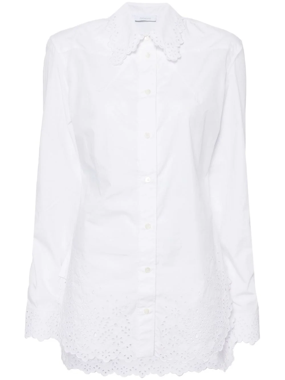 haut shirt Highlights - White - Cotton - Front button fastening - Cutwork detailing - Long sleeves - Buttoned cuffs - Curved hem - High-low hem Imported Composition Cotton 100% SIZE & FIT Model measurements Height 5 ft 10 in(1.79 m) Bust/Chest 31.88 in(81 cm) Hips 36.22 in(92 cm) Waist 24.4 in(62 cm) FittingInformation Designed to be unstructured, offering a loose fit throughout Made from a midweight non-stretch fabric Measurement BUST 40.15 in(102 cm) LENGTH 34.64 in(88 cm) Shoulder Width 17.32 in(44 cm) SLEEVE LENGTH 26.37 in(67 cm) WAIST 39.37 in(100 cm) Washing instructions Machine Wash