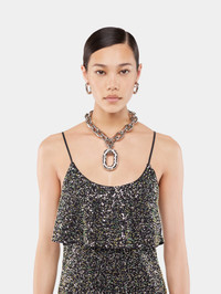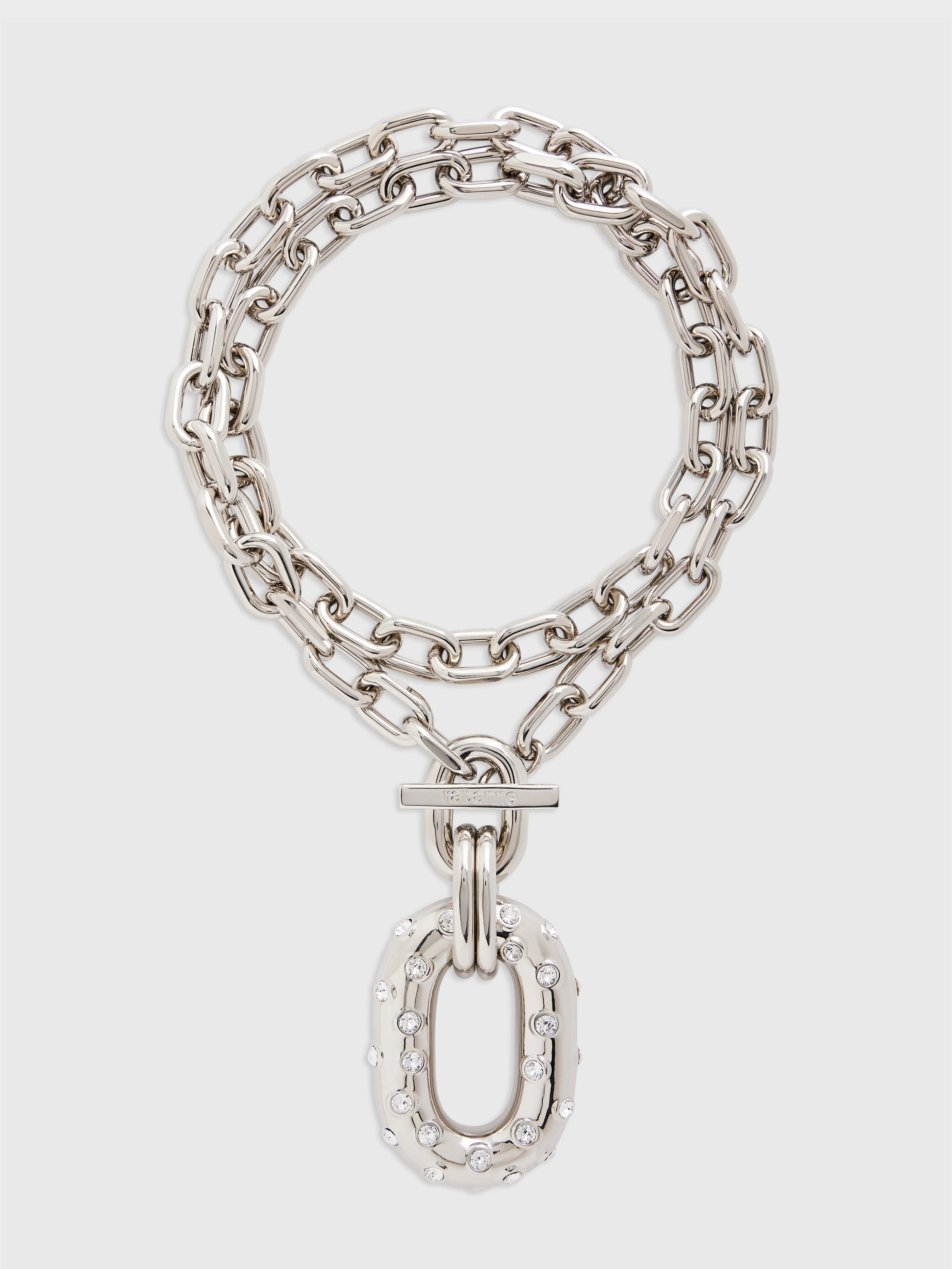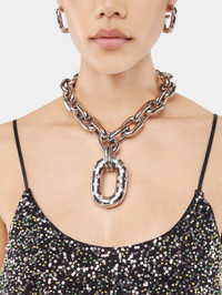 Iconic XL link necklace composed of small links interlaced with an oversized link adorned with rhinestones. - Color: Silver / Rhinestones - Composition: 100% Brass - Made in Italy
