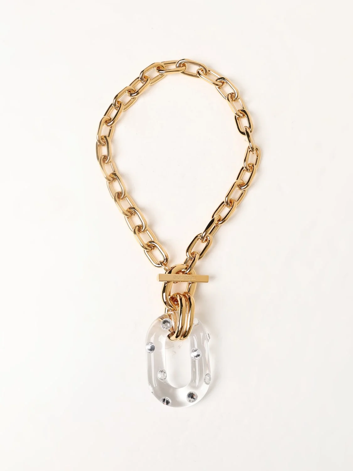DESCRIPTION - Logo: Engraved - Details: With rhinestones - Model: Crewneck - Closure: Interlocking - Materials: Brass, Resin - Pattern: Plain-colored DETAILS AND CARE Composition 90% BRASS 10% AF SIZE AND FIT Sizes not available Designer code: 24ABB0379MET690 M711 Giglio Code: G10342 Designer: Rabanne Collection: Rabanne Woman Category: Accessories Rabanne