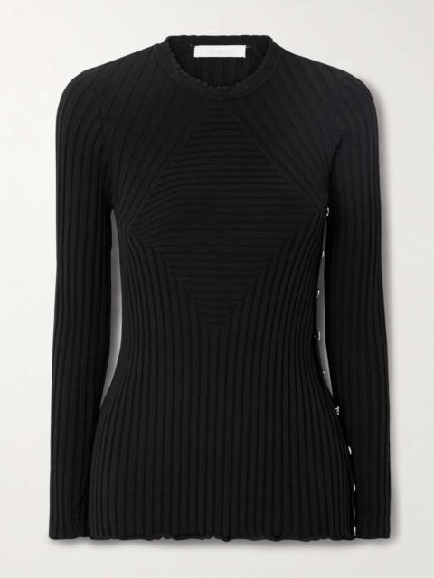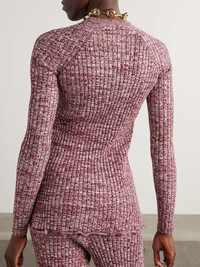 EDITORS'NOTES Rabanne's sweater is made from ribbed-knit in a melange of claret and pastel-pink shades that create visual interest. It's designed for a slim fit with a ruffled hem and has silver-tone buttons along the side - they're etched with the logo and can be adjusted to create a split. Wear yours with the matching pants in our edit. SIZE & FIT - Fits true to size, take your normal size - Designed for a slim fit - Mid-weight knit - S/M/L sizing DETAILS & CARE - Melange claret and pastel-pink viscose and polyester-blend - Button fastenings along side - 70% viscose, 30% polyester - Machine wash