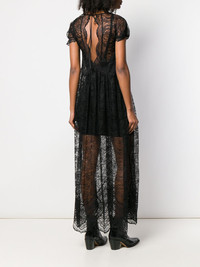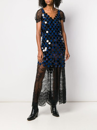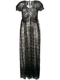 lace maxi dress Black lace maxi dress from Paco Rabanne featuring a scoop neck, short sleeves, an empire line silhouette, a long length and a sheer construction. Imported Composition Nylon 100% SIZE & FIT Model measurements Height 5 ft 11 in(1.8 m) Bust/Chest 31.49 in(80 cm) Hips 35.82 in(91 cm) Waist 24.8 in(63 cm) Washing instructions Dry Clean Only
