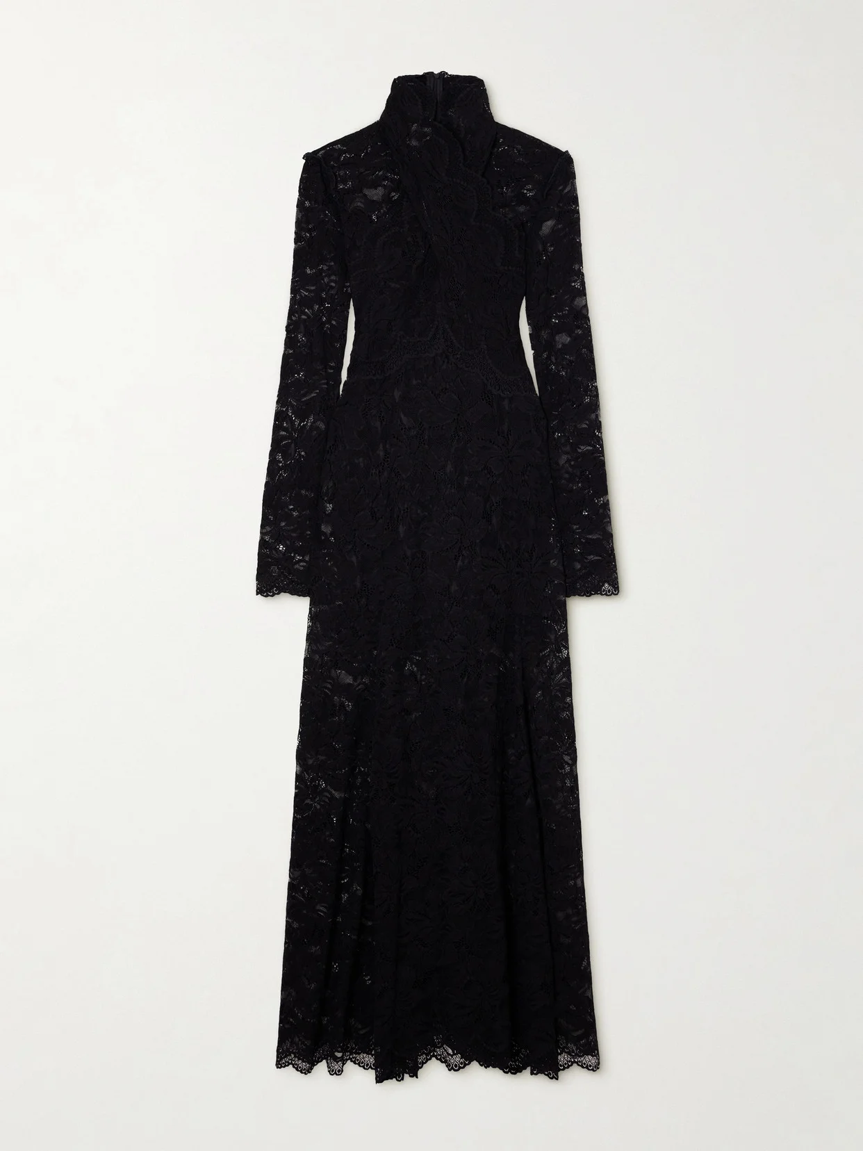 Rabanne's dress is perfect for so many evening events. Made from intricate floral lace, it has waist-framing guipure inserts and is layered and wrapped at the front to create an illusion halter neckline. Wear yours with black pumps.