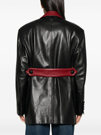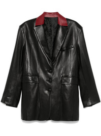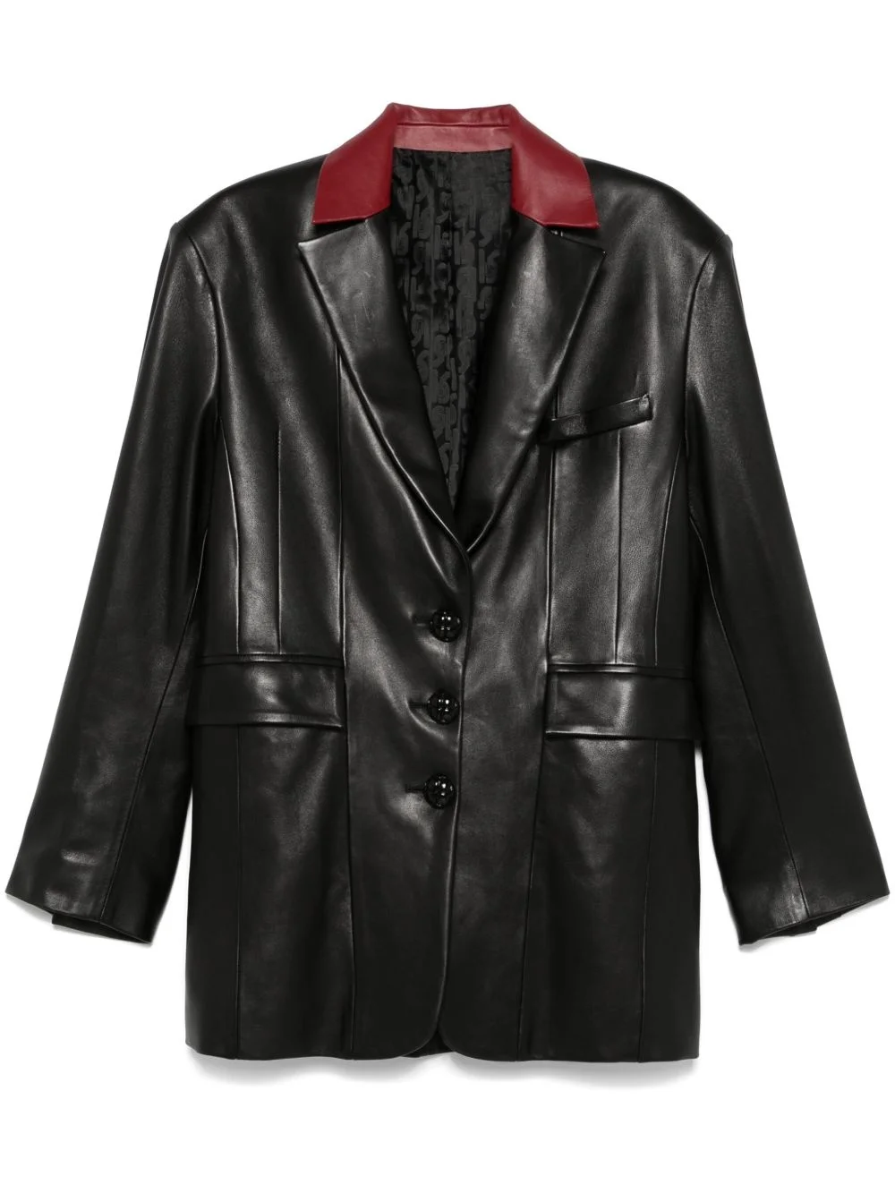 leather blazer Highlights - Black/bordeaux red - Lambskin - Front button fastening - Notched lapels - Long sleeves - Buttoned cuffs - Chest welt pocket - Two front flap pockets - Multiple internal slip pockets - Logo-jacquard lining - Straight hem Imported Composition Lamb Skin 100% SIZE & FIT Model measurements Height 5 ft 11 in(1.8 m) Bust/Chest 33.07 in(84 cm) Hips 37.4 in(95 cm) Waist 25.19 in(64 cm) FittingInformation Designed for a boxy fit, intended for a loose fit throughout The internal shoulder pads offer a structured shape Soft leather has a supple and smooth construction offering some flexibility