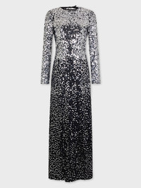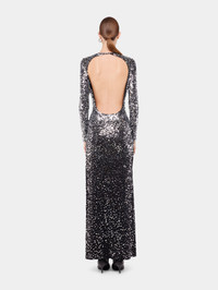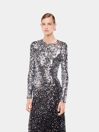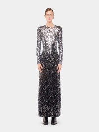 Second-skin long jersey dress hand-embroidered with silver round sequins - Color: Black - Stretch fabric - Crew neck - Long sleeves - Ankle-length - Composition: 90% cupro, 10% elastane - Made in Portugal Size & Fit - Model's height: 180 cm / 5ft 11in - Model wears a size FR 36 / UK 8 / US 4 - This style is true-to-size - We recommend your usual size.
