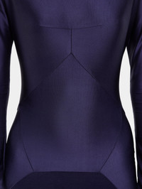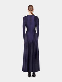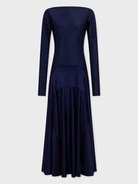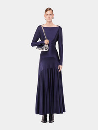 Long dress with long sleeves and godet details in shiny jersey. - Color: Midnight Blue - Crew neck - Long sleeves - Floor length - Composition: 90% viscose, 10% elastane - Made in Madagascar Size & Fit - Model's height: 180 cm / 5ft 11in - Model wears a size FR 36 / UK 8 / US 4 - This style is true-to-size - We recommend your usual size.