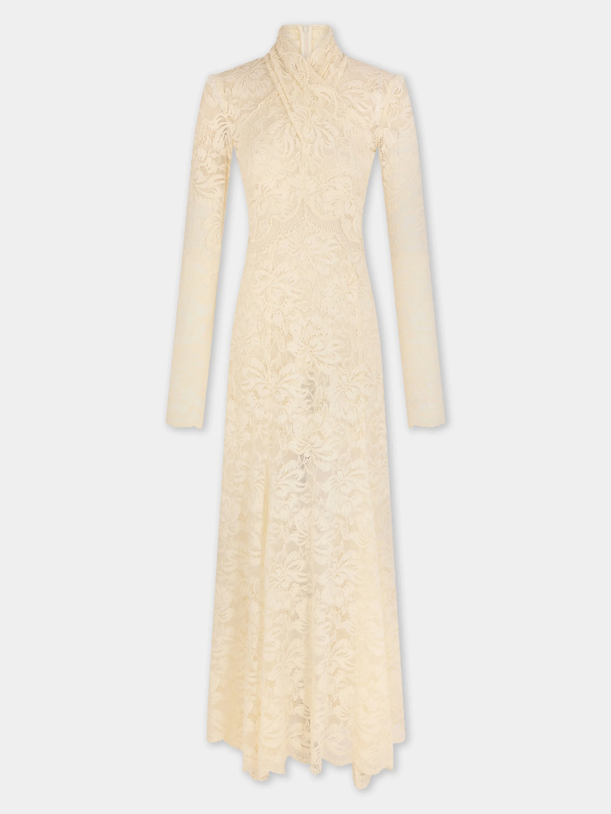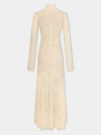 Long-sleeve dress in lace and viscose jersey mix with cut-out details. - Color: Ivory - Long sleeves - High neck - Long dress - 90% Polyamide, 10% Elasthanne - Made in Poland Size & Fit - Model's height: 180 cm / 5ft 11in - Model wears a size FR 36 / UK 8 / US 4 - This style is true-to-size - We recommend your usual size.