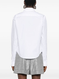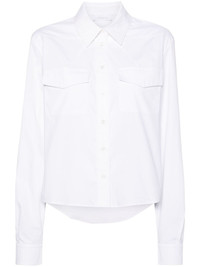 long-sleeve cotton shirt Highlights - White - Cotton - Poplin texture - Pointed flat collar - Long sleeves - Buttoned-cuff sleeves - Two chest flap pockets - High-low hem - Front button fastening Imported Composition Cotton 100% SIZE & FIT Model measurements Height 5 ft 11 in(1.8 m) Bust/Chest 32.67 in(83 cm) Hips 36.22 in(92 cm) Waist 24.4 in(62 cm) FittingInformation Designed to be unstructured, offering a loose fit throughout Made from a midweight non-stretch fabric This piece fits true to size – take your usual size