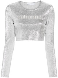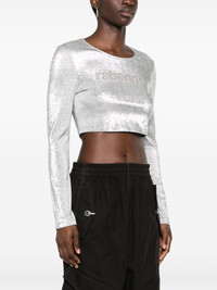 gem-logo cropped T-shirt Highlights - Silver-tone - Stretch-design - Lame effect - Round neck - Long sleeves - Gem-logo detailing - Cropped - Straight hem Imported Composition Viscose 77%, Polyester 16%, Elastane 7% SIZE & FIT Model measurements Height 5 ft 10 in(1.77 m) Bust/Chest 32.28 in(82 cm) Hips 35.03 in(89 cm) Waist 25.19 in(64 cm) Measurement CHEST 31.49 in(80 cm) LENGTH 14.96 in(38 cm) WAIST 26.77 in(68 cm) FittingInformation Designed for a close fit throughout Made from a lightweight stretch fabric, this piece offers elasticity and flexibility when worn This piece fits true to size – take your usual size Washing instructions Dry Clean Only