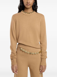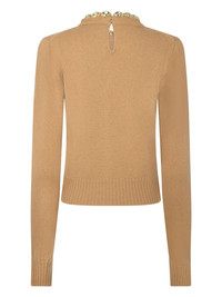 embellished knitted jumper Highlights - Camel brown - Wool-cashmere blend - Knitted construction - Crew neck - Gold-tone hardware - Long sleeves - Keyhole detail to the rear - Straight hem Made in France Composition Wool 70%, Cashmere 30%