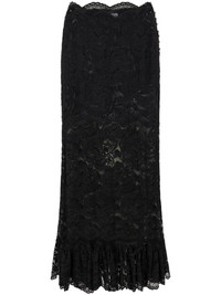 high-waist lace midi skirt Highlights - Black - Stretch-design - Lace detailing - Side button fastening - High waist - Ruffle hem Imported Composition Polyamide 90%, Elastane 10%