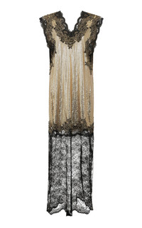 Building off of last season’s layered eclecticism, Julien Dossena channels a British beat, balancing jolts of grunge and a streetwise ease with vintage-inspired luxuries. This grunge-inspired dress has a base of gold-tone aluminium combined with delicate lace panels. The relaxed silhouette has a low neckline and side slits through the skirt. Why not pair with knee high leather boots for an autumnal feel? PRODUCT DETAILS - Pre-Fall ‘25 - Slip on - Composition: fabric1: 100% aluminum; fabric2: 50% cotton, 50% polyurethane - Dry clean - Designer Color: Light Yellow Gold - Imported