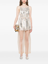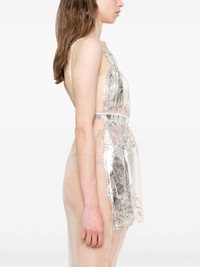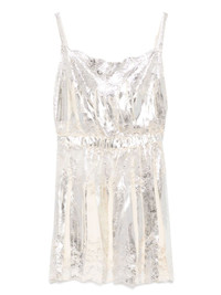 metallic-finish top Highlights - Light beige - Side hook and eye fastening - Open back - Sleeveless - Square neck Imported Composition Polyester 100% SIZE & FIT Model measurements Height 5 ft 10 in(1.79 m) Bust/Chest 35.43 in(90 cm) Hips 35.03 in(89 cm) Waist 25.19 in(64 cm) FittingInformation Designed to be unstructured, offering a loose fit throughout The elasticated waist allows for a comfortable fit Made from a midweight non-stretch fabric