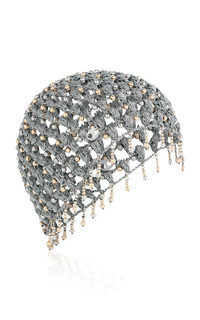 Metallic Woven Crystal-Embellished Chain Cap silver