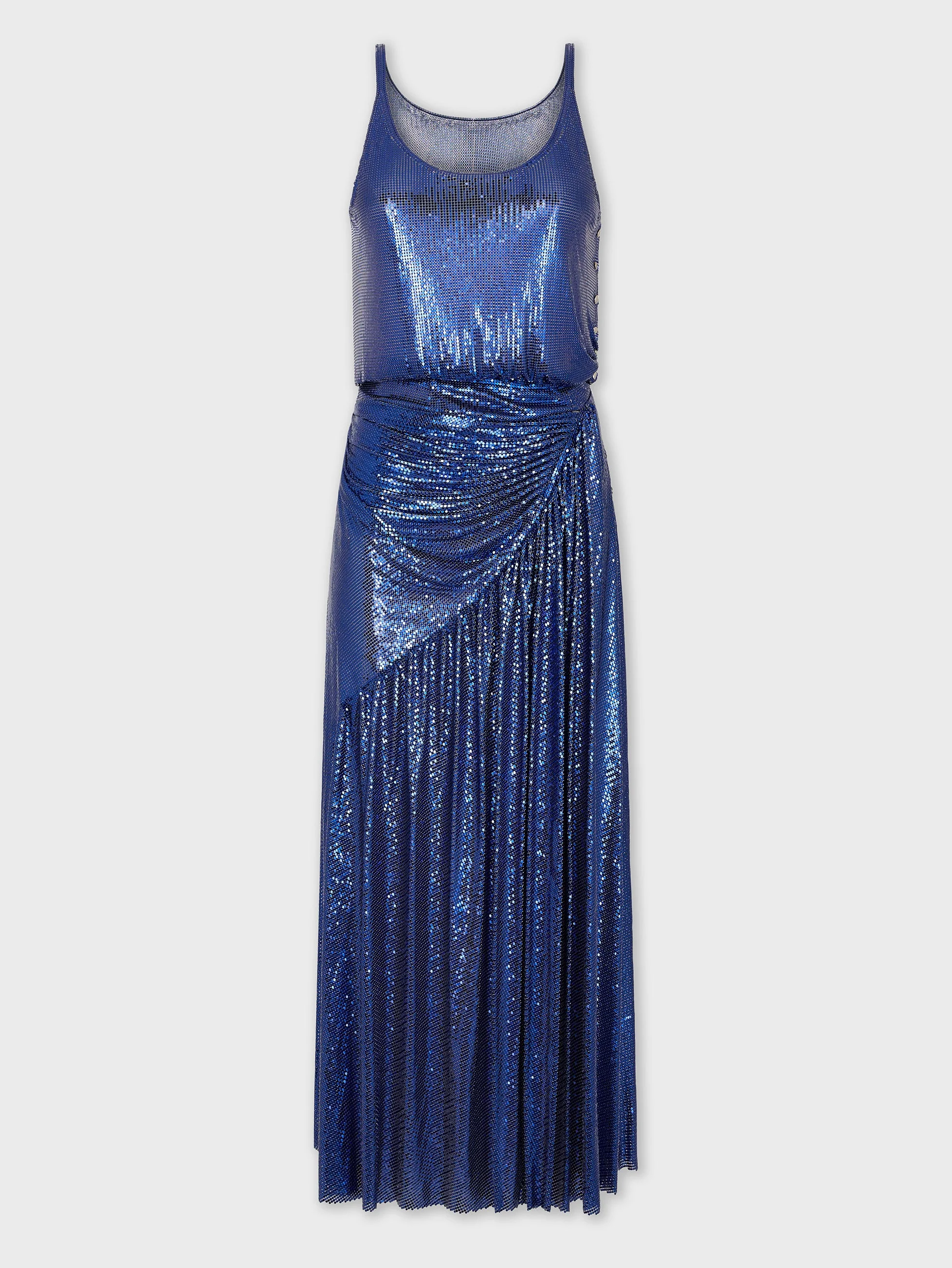 Midi mesh dress with straps. - Color: Blue Bird - Sleeveless - Cowl neck - Midi dress - 100% Aluminium - Made in Madagascar Size & Fit - Model's height: 180 cm / 5ft 11in - Model wears a size FR 36 / UK 8 / US 4 - This style is true-to-size - We recommend your usual size.