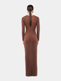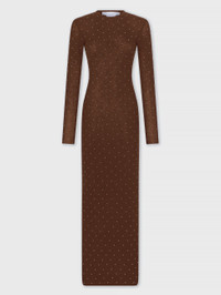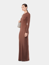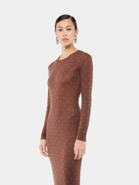 Midi second-skin dress with long sleeves in wool with stud details. - Color: Brown - Crew neck - Long sleeves - Ankle-length - Composition: 100% wool - Made in China Size & Fit - Model's height: 180 cm / 5ft 11in - Model wears a size FR 36 / UK 8 / US 4 - This style is true-to-size - We recommend your usual size.