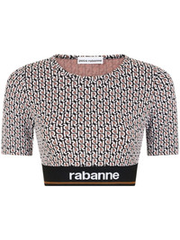 monogram-print cropped T-shirt Highlights - Black/multicolour - Monogram pattern - Round neck - Short sleeves - Logo underband - Straight hem Imported Composition Viscose 93%, Polyamide 5%, Elastane 2%