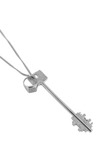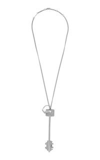 Tinged with his chic Parisian spirit, Julien Dossena returns with a lineup of jewelry and accessories in varied textures and materials that demonstrates the sensorial power of fusing contrasts. This ornate accessory boasts a crystal embellished safe key and signet ring, suspended from a thin, adjustable snake-chain. Style beneath shirt collars to replicate the runway. PRODUCT DETAILS - Lobster hook fastening - Composition: 100% brass - Made in Italy SIZE & FIT - This item measures 62 cm