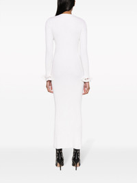 open-knit panel midi dress Woven from stretch-wool to a ribbed knit design, this Rabanne dress is adorned with open-knit panels and silver-toned eyelets - a signature touch for the brand. Highlights - White - Stretch-wool - Ribbed knit - Open knit - Eyelet detailing - Round neck - Long sleeves - Mid-length Imported Composition Wool 89%, Polyamide 9%, Spandex/Elastane 2% SIZE & FIT Model measurements Height 5 ft 11 in(1.8 m) Bust/Chest 30.7 in(78 cm) Hips 35.03 in(89 cm) Waist 24.4 in(62 cm) FittingInformation Designed for a close fit throughout Made with a midweight knit, this piece offers some stretch This piece fits true to size – take your usual size Measurement SLEEVE LENGTH 24.48 in(62.2 cm) HIPS 25.98 in(66 cm) LENGTH 52.51 in(133.4 cm) WAIST 22 in(55.9 cm) BUST 27.99 in(71.1 cm) Washing instructions Dry Clean Only