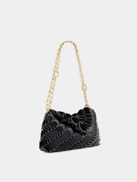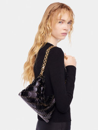 Paco small clutch in black patent leather - Color: Black / Gold - Dimension: 17x28.5x3cm - Magnetic leather disc closure - Black cotton twill lining, sliding chain and metal hardware in gold-tone. - 100% Leather - Made in Hungary