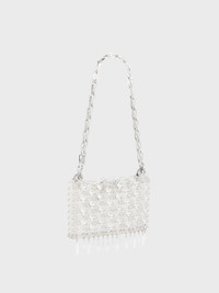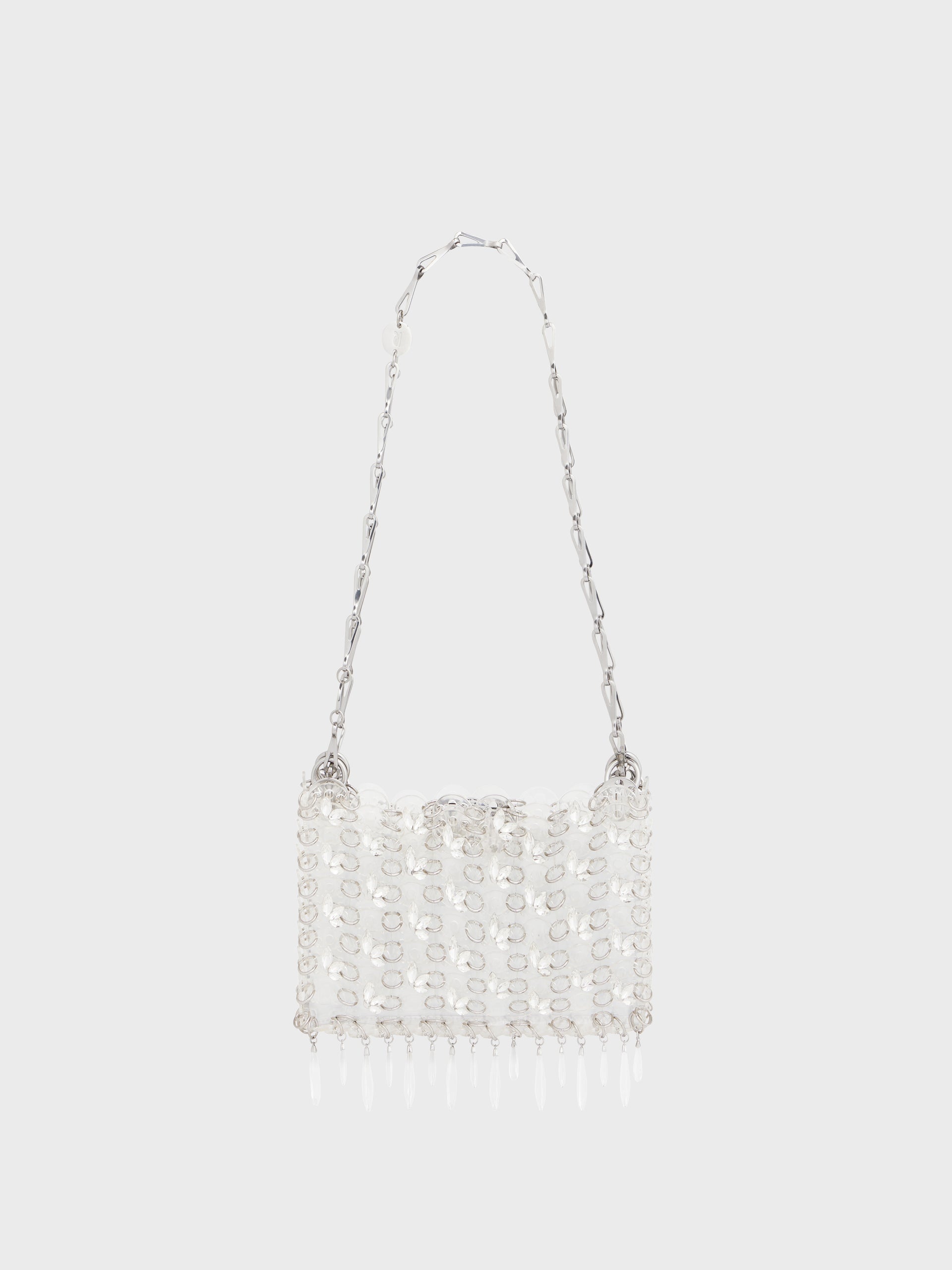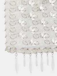 - Color : Transparent / Silver - Embellished with crystal strass forming transparent drops. - Wear : over the shoulder - Rabanne engraved magnetic closure DETAILS 19 x 11 x 3cm - 70% Acetate, 30% Glass - Made in Madagascar - This style is true-to-size - We recommend your usual size