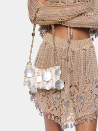 - Color: Mother-of-pearl / Gold - Iconic gold Rabanne double chain for shoulder carry. - Rabanne engraved magnetic closure DETAILS - Composition: 70% Mother-of-pearl / 30% stainless steel - Made in Madagascar