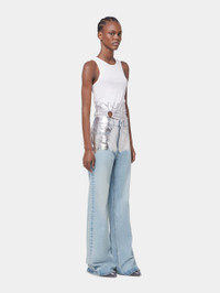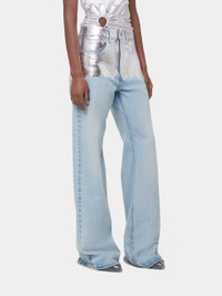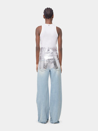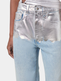 - Colors : Light blue / Silver - Foil silver detail at the top of the trousers - Silver signature button closure DETAILS - Composition : 100% Cotton - Made in Italy - Model's height: 180 cm / 5ft 11in - Model wears a size FR 36 / UK 8 / US 4 - This style is true-to-size - We recommend your usual size.