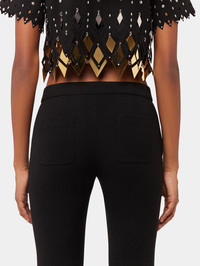 BLACK CREPE CROP TOP WITH DIAMOND-SHAPED LASER ASSEMBLY