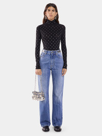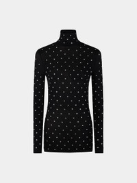 Crystal-embellish high neck top in second-skin jersey. - Color : Black - No lining - Soft, stretchy material - Stand collar - Long sleeves - Crystal-embellished - Composition : 90% Cupro, 10% Elastane - Made in Portugal Size & Fit - Model's height: 177 cm / 5ft 9,5in - Model wears a size FR 36 / UK 8 / US 4 - This style runs large - If you are between two sizes, choose the size below. Otherwise, choose your usual size.