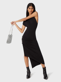 BLACK DRAPED PRESSION DRESS IN JERSEY