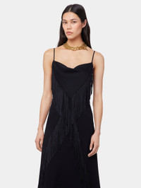 - Color : Black - Cowl neck - Sleeveless - Ankle-length - Laminated fringe on the dress DETAILS - Composition: 80% Acetate, 20% Polyester - Made in Madagascar - Model's height: 180 cm / 5ft 11in - Model wears a size FR 36 / UK 8 / US 4 - This style is true-to-size - We recommend your usual size.