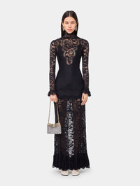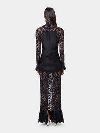 - Color : Black - Stand Collar - Long sleeves - Ankle-length - Scalloped edges DETAILS - Composition: 90% Polyamide, 10% Elastane - Made in Tunisia - Model's height: 180 cm / 5ft 11in - Model wears a size FR 36 / UK 8 / US 4 - This style is true-to-size - We recommend your usual size.