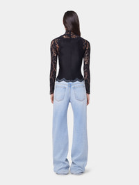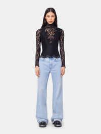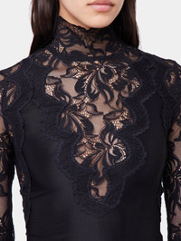 Long sleeve top in lace and viscose jersey. - Color: Black - Stand collar - Long sleeves - Scalloped edges - Composition: 90% Polyamide, 10% Elastane - Made in Tunisia Size & Fit - Model's height: 180 cm / 5ft 11in - Model wears a size FR 36 / UK 8 / US 4 - This style is true-to-size - We recommend your usual size.