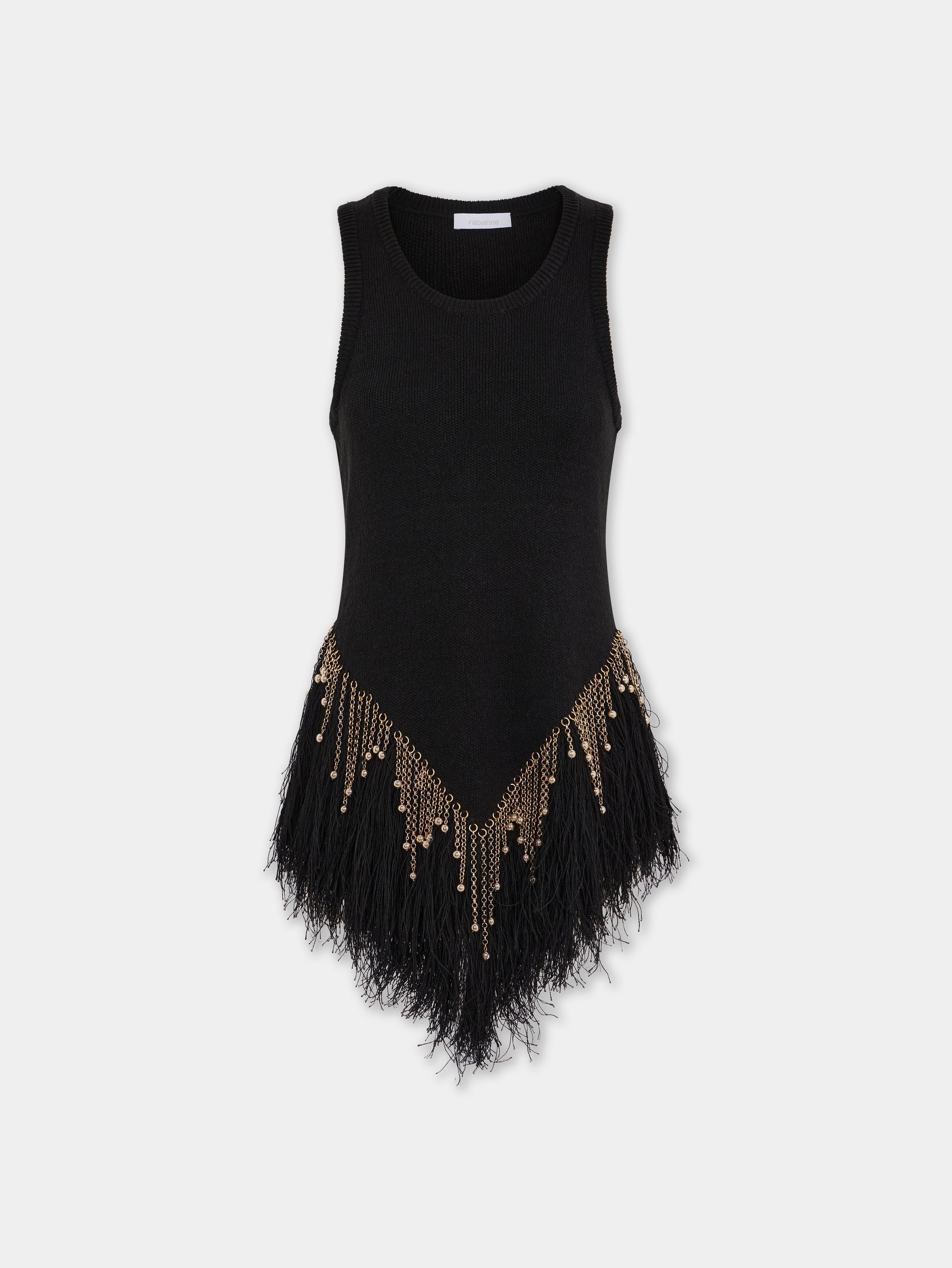 - 100% knitted linen - Hand-embroidered metallic fringes - Asymmetrical cuts DETAILS Model's height: 176 cm / 5ft 9,5in Model wears a size FR S / UK 8 / US 4 - Composition: 100% linen - Made in China