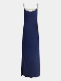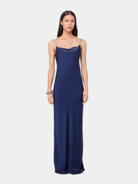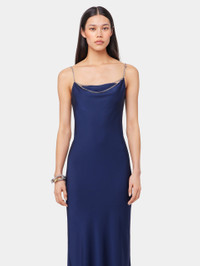 - Color: Navy Blue - Cowl neck - Sleeveless - Ankle-length - Signature silver chain detail at neckline DETAILS - Composition: 100% Polyester - Made in Tunisia - Model's height: 180 cm / 5ft 11in - Model wears a size FR 36 / UK 8 / US 4 - This style is true-to-size - We recommend your usual size.